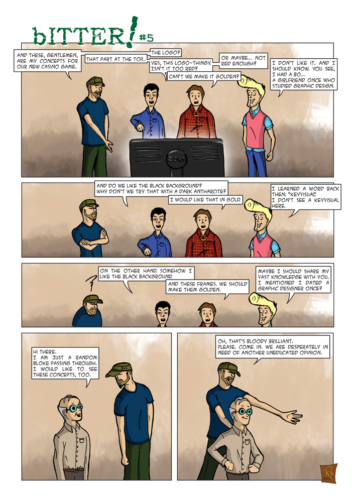 On art: This episode is a good example for my initial concept for this comic. Some lineart with a quick and dirty (and in this case: nonexistent) background. This soon changed when I began to start episodes with an establishing shot. And an establishing shot without background would not be an establishing shot at all, eh?