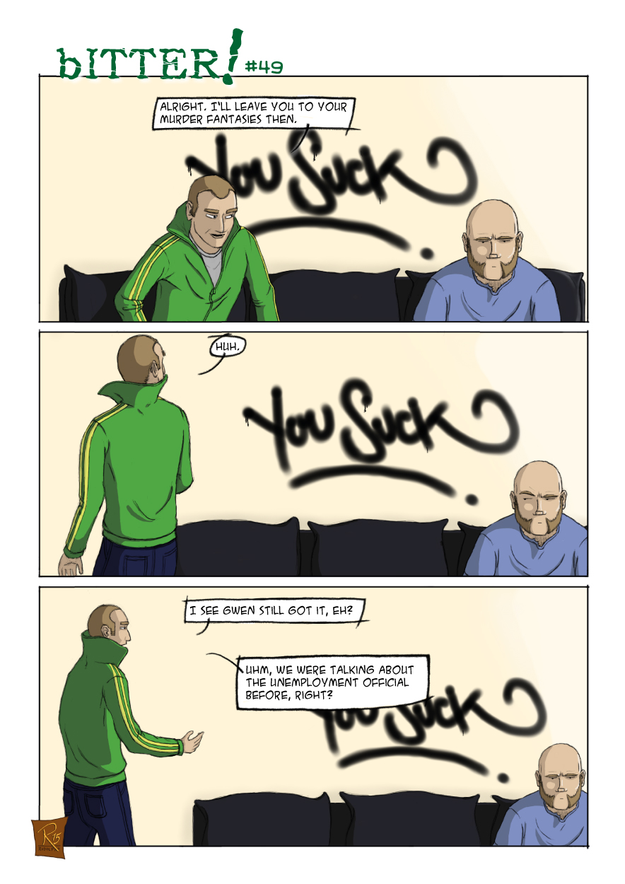 This webcomic will be updated in irregular intervals. If you for some reason want to contact me (Rudolpho) without using the comments, feel free to drop me a line: bitter[at]rudolpho[dot]net